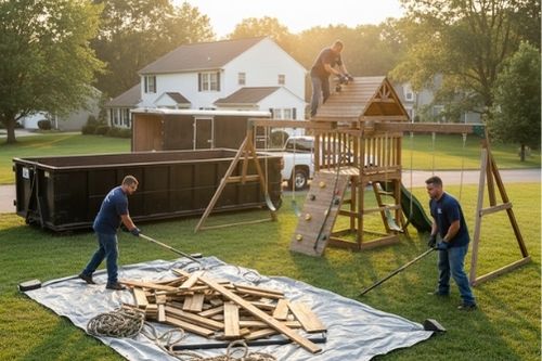 From small playsets to large swing sets, we manage complete disassembly and removal. Every piece is safely hauled away, leaving your yard open, organized, and ready for landscaping, new structures, or play areas, while minimizing stress and cleanup.